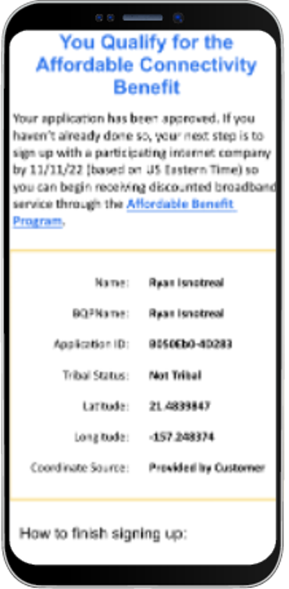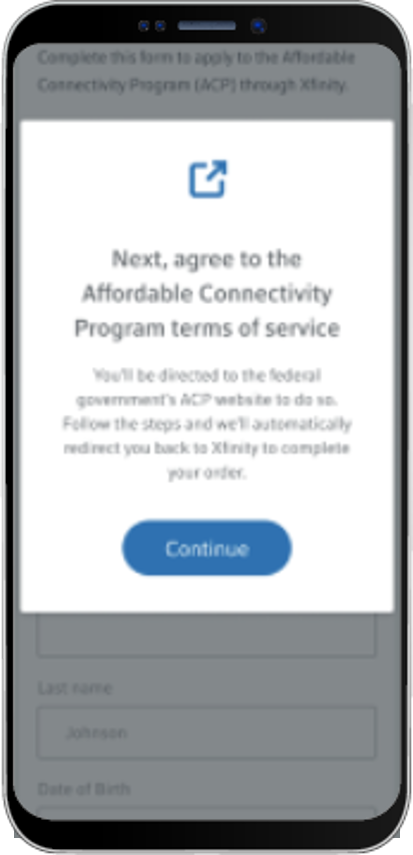 Note: If an error occurs, continue to complete the sale and the customer should get an email from the National Verifier website within 72 hours to complete the sign-up process. They can later link their ACP to their Xfinity account.